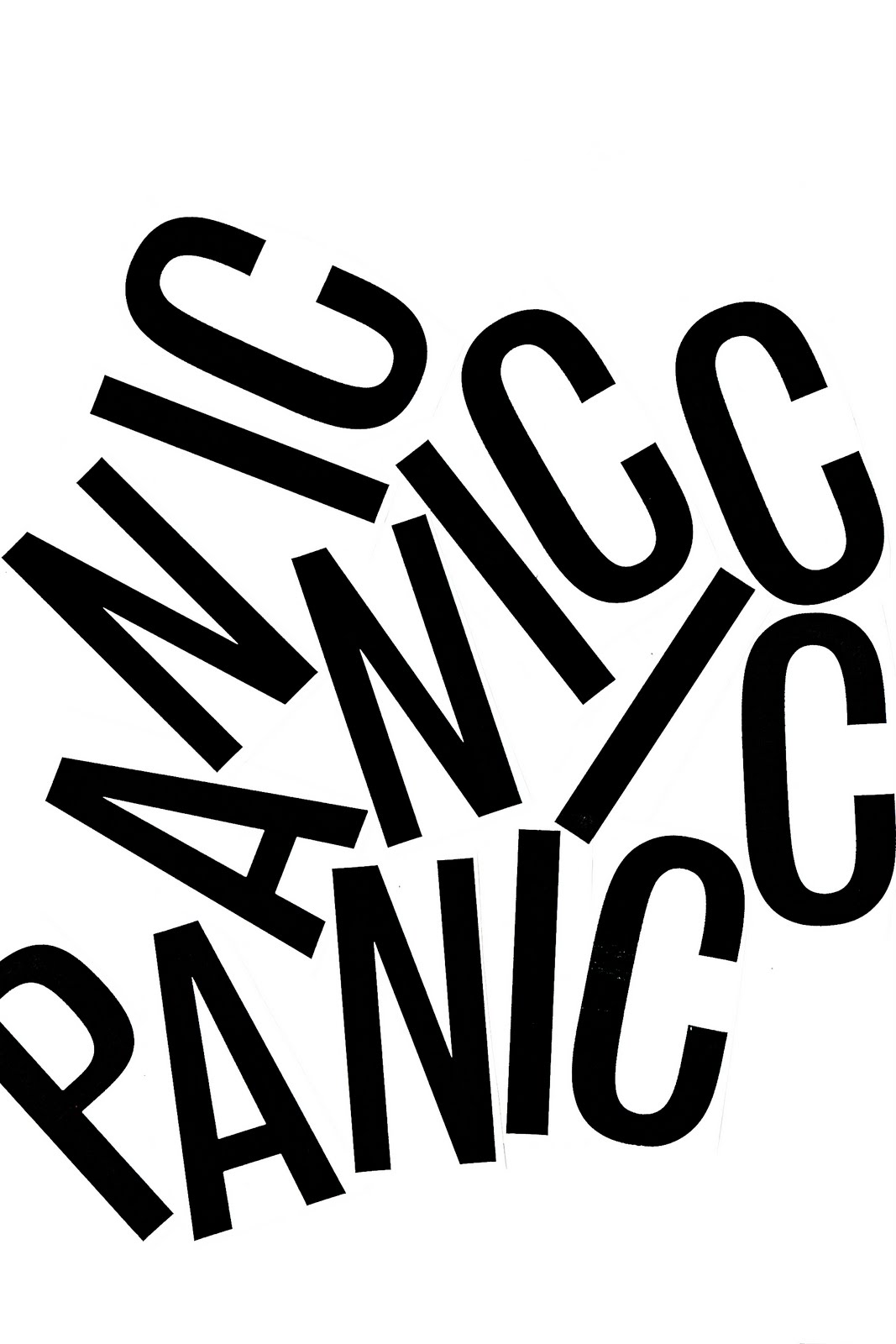 The original composition I had for panic was alright but needed a small amount of editing to push the point across. The first piece used a style for Grotesque Modern Std that was too playful for panic. By increasing the size of the letters and the thickness of the letters it brings out a more sudden and sharp feeling that could be considered panic inducing.